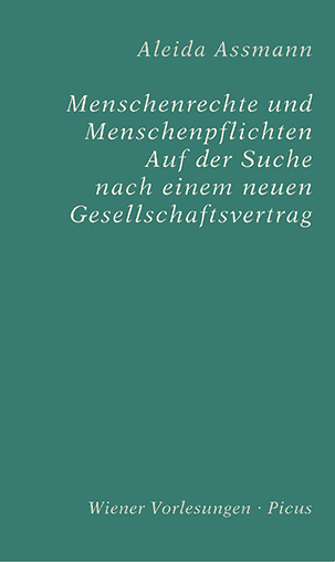 » [...] Erstens die politische Durchsetzung von Menschenrechten als eine moderne Errungenschaft der Geschichte; zweitens die soziale Unterfütterung dieses rechtlichen Schutzes durch uralte kulturelle Werte wie Empathie und Solidarität, und drittens ein Kanon von Regeln des fairen und respektvollen Zusammenlebens unter Einheimischen und Zugewanderten. Für diesen Kanon, der jenseits kultureller Differenzen als gemeinsame Verpflichtung anerkannt wird, schlägt Aleida Assmann den Begriff der 'Menschenpflichten' vor, deren fünftausendjährige Geschichte sie rekonstruiert und für die Gegenwart aktualisiert.« Picus